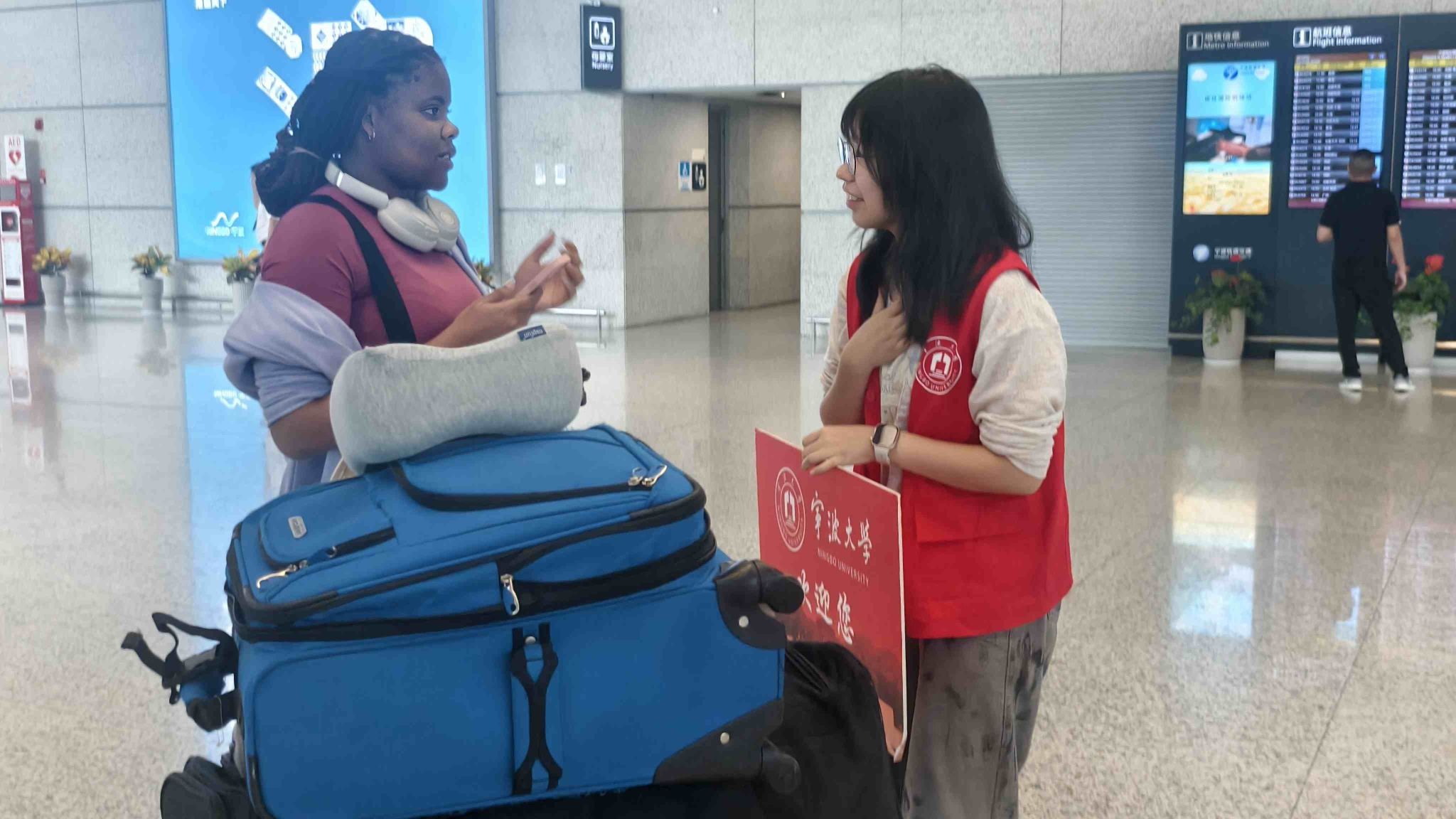 校长、党委副书记、中国科学院院士蔡荣根,校党委副书记、副校长吕朝锋一行来到数智中心,通过智能可视化大屏实时了解新生报到情况,强调在保证安全性的前提下,充分利用信息化手段提升管理科学性;随后走访师生服务大厅、南门公寓5号楼、甬研公寓2号楼等地,亲切慰问参加迎新工作的一线工作人员和学生志愿者,并与新生和家长交流互动。蔡荣根在交流中表示,宁波是个好地方,宁大校园适合做学术研究,他勉励新生尽快适应环境,找到自己感兴趣的研究方向,勇于挑战科学前沿,在攻坚克难中追求卓越,收获属于自己的精彩学术人生。在国际学生报到现场,蔡荣根和新生亲切交流。体育学院运动人体科学专业2025级博士研究生Ivan Kozinets(伊万 科兹麦斯)来自俄罗斯,也是一名“老宁大人”。他在就读“2+2”项目时便深深爱上了宁大,并坚定地留下来进一步深造,今年已是他在宁大求学的第6个年头。